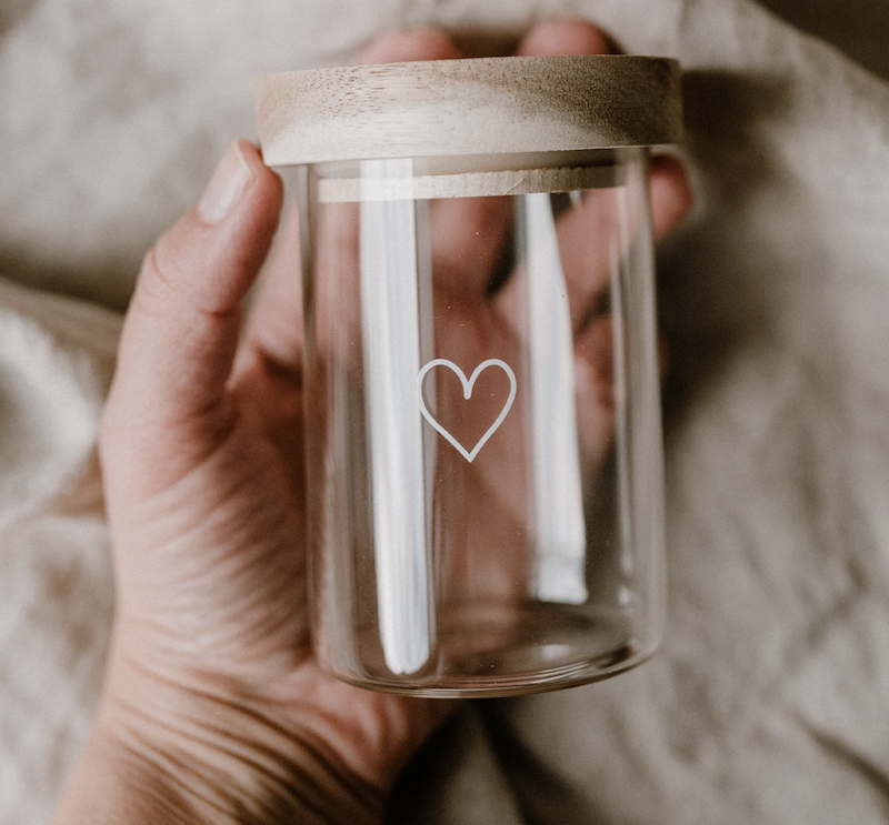 Des épices, des feuilles séchées pour vos infusions, des coton-tiges ou le sable de vos dernières vacances à la plage pour une déco nature, son design minimaliste et son petit coeur blanc apporteront une touche de douceur à la déco.